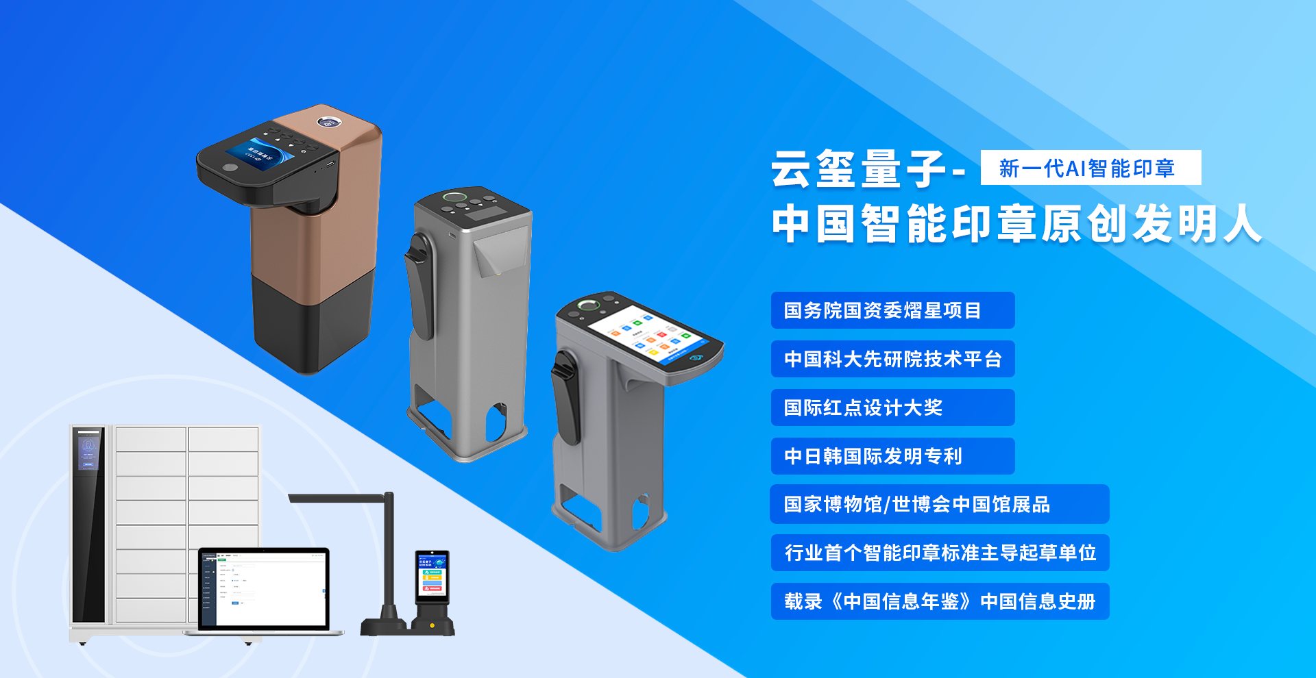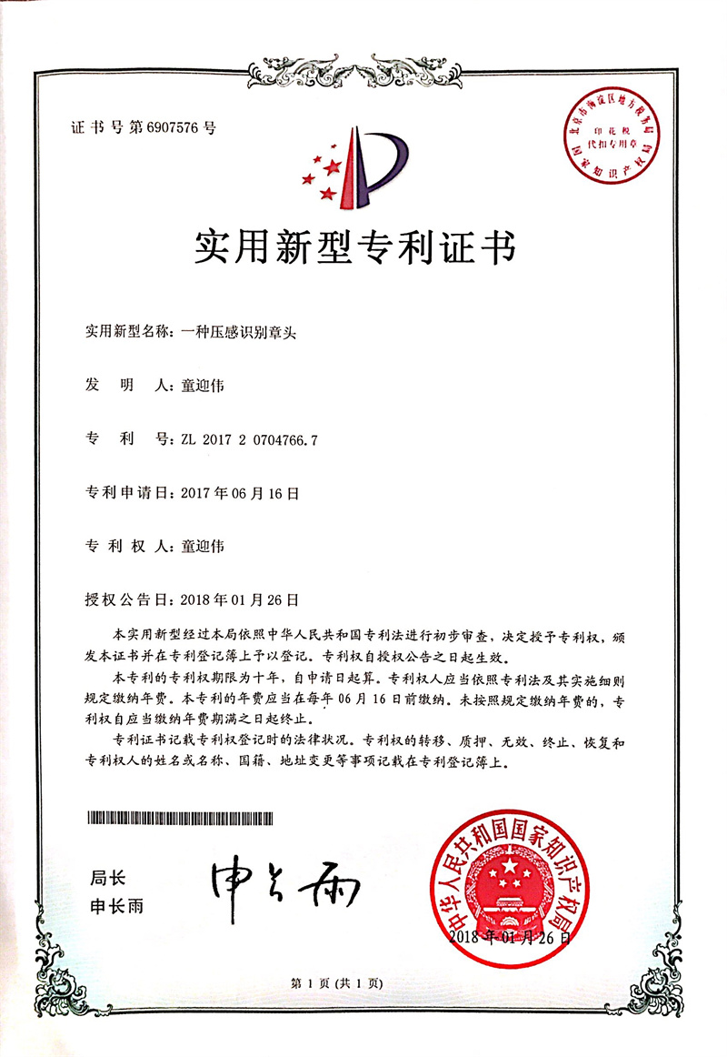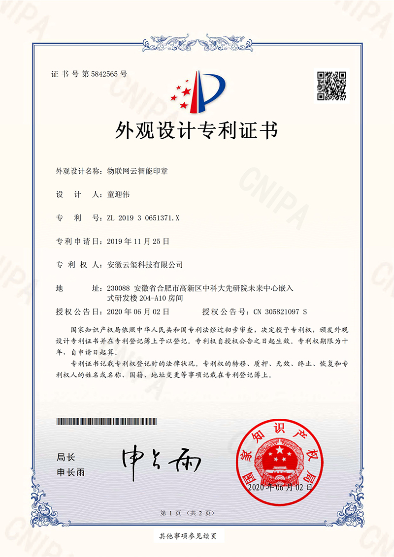 公司原創發明一體式智能印章技術,引領國內外新一代智能印簽創新變革。獲中日韓多項發明專利,徹底解決了實體印章和電子印簽管控的社會難題,獲國務院國資委全國央企熠星二等獎。公司聯合國家信息安全產品認證中心、公安部三所、信通院、中國印章協會等,主導起草了行業首個智能印章安全認證標準和智能印章產品標準,引領了智能印章行業發展。